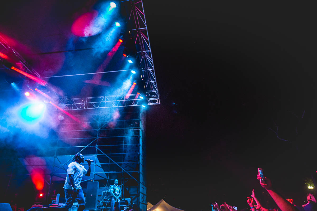 Sunset, thick crowd, thick smoke—DJ Rick Geez pumped out some remixed hits and pumped up the crowd for hip-hop artist Pusha T to take the stage. Twilight was rocked by the rap, the mood and the energy of the performance. Lyric after lyric from the stage was screamed right back by the audience as the show continued to ramp up the exuberance of the atmosphere late into the night.
