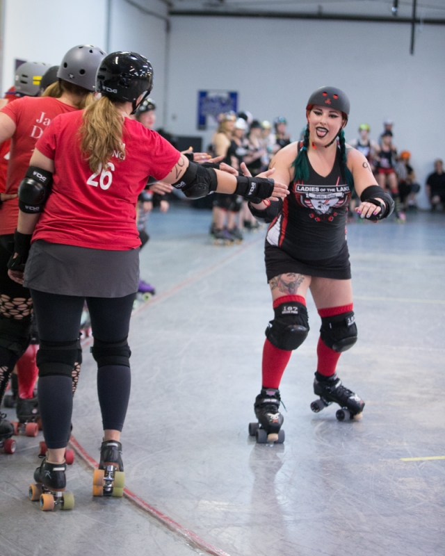 The Red Rockettes had their Summer Bout on a rare Saturday, the second half of a double-header that also featured the Wasatch Roller Derby Home Teams. Due to the unusual time some of the ranks were filled by members of Ladies of the Lake. I