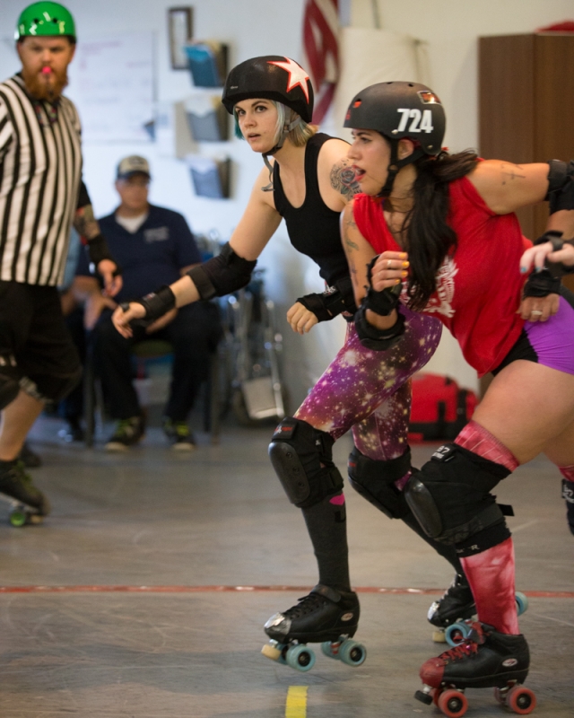 The Red Rockettes had their Summer Bout on a rare Saturday, the second half of a double-header that also featured the Wasatch Roller Derby Home Teams. Due to the unusual time some of the ranks were filled by members of Ladies of the Lake. It was a splendid time, with a level of excitement and fun that didn’t reflect the score.