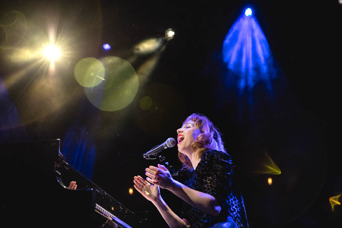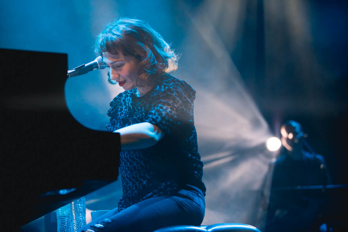 Regina Spektor playing piano center stage at The Saltair. Photo: Lmsorenson.net