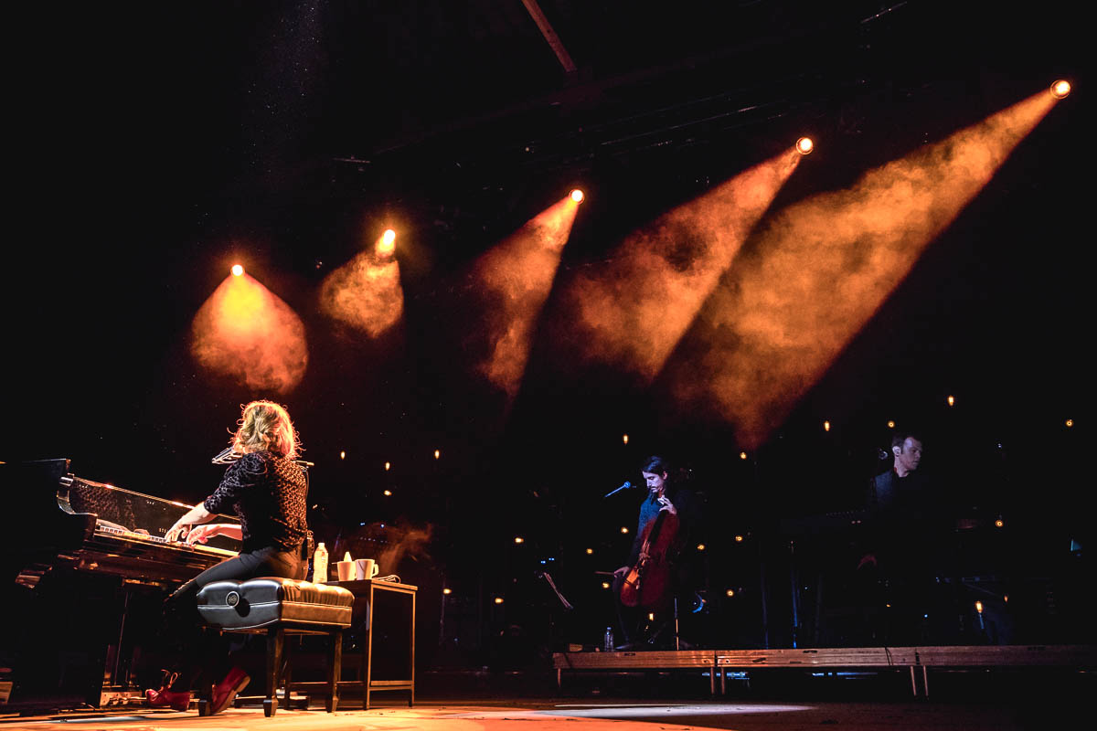 Regina Spektor with spotlights behind her, which illuminate the mood perfectly. Photo: Lmsorenson.net