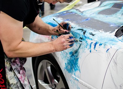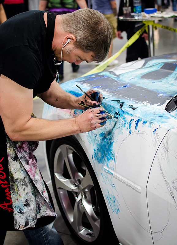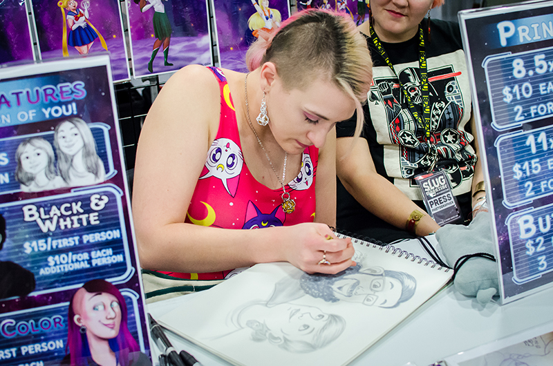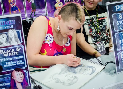 Local artist Eleora Nelson of Eleora Draws putting the finishing touches on a caricature [Matt Brunk / unlifephotography.com]