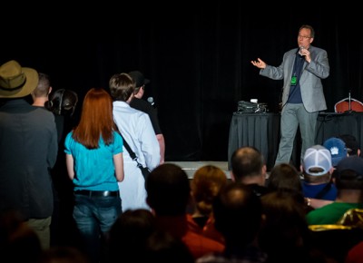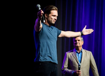 SLCC founder Bryan Brandenburg introducing James and Oliver Phelps [Matt Brunk / unlifephotography.com]