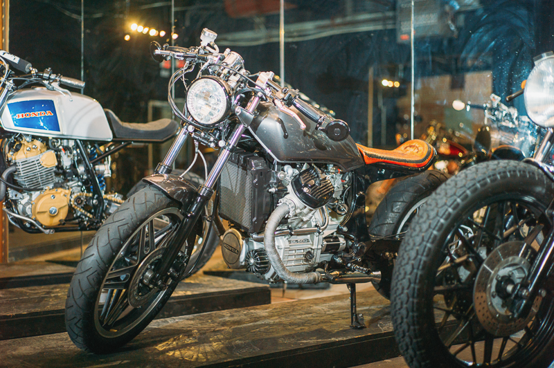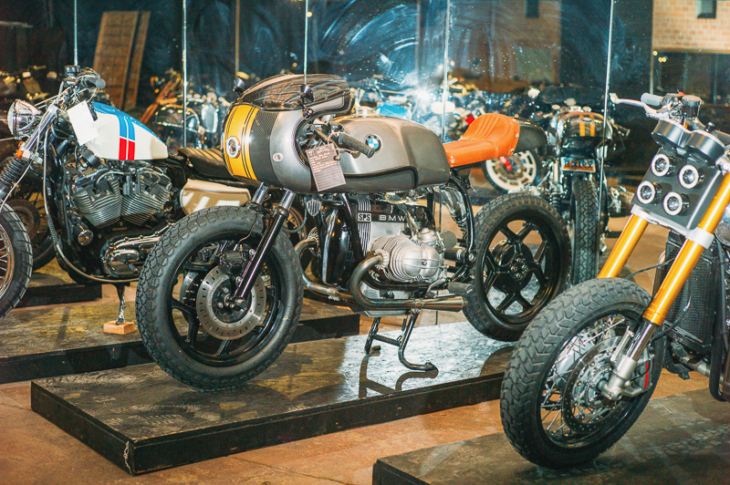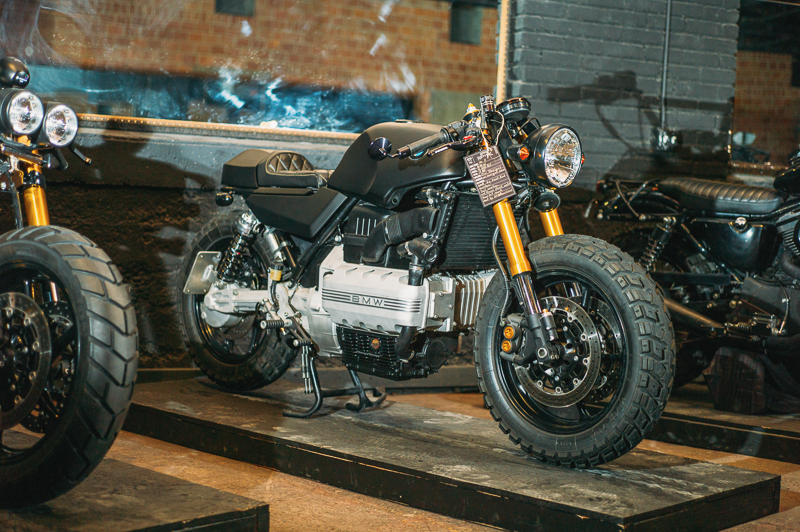 A lineup of diverse custom motorcycles in the invited builder room. Photo: @clancycoop