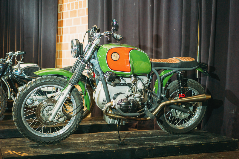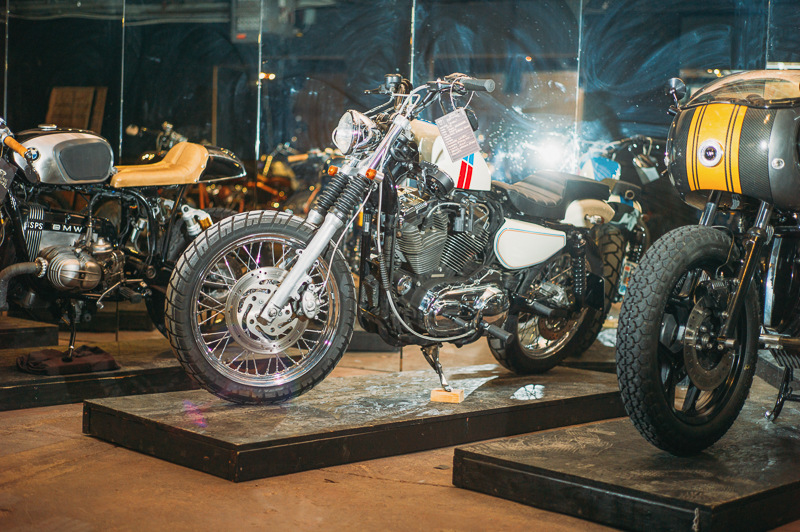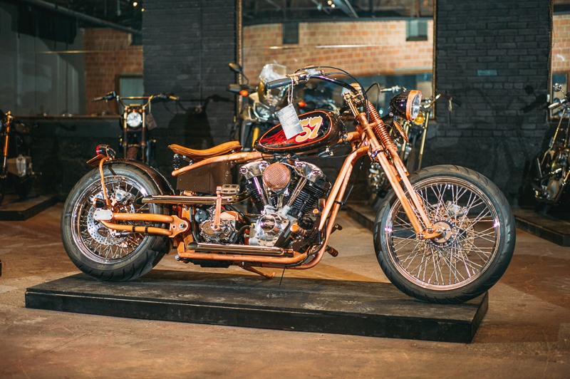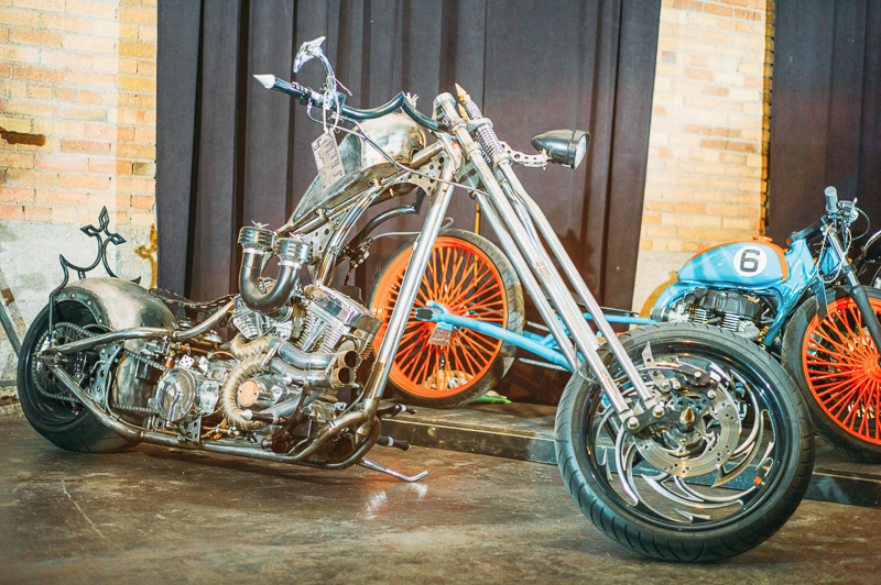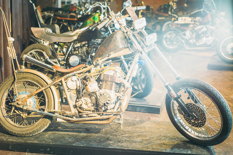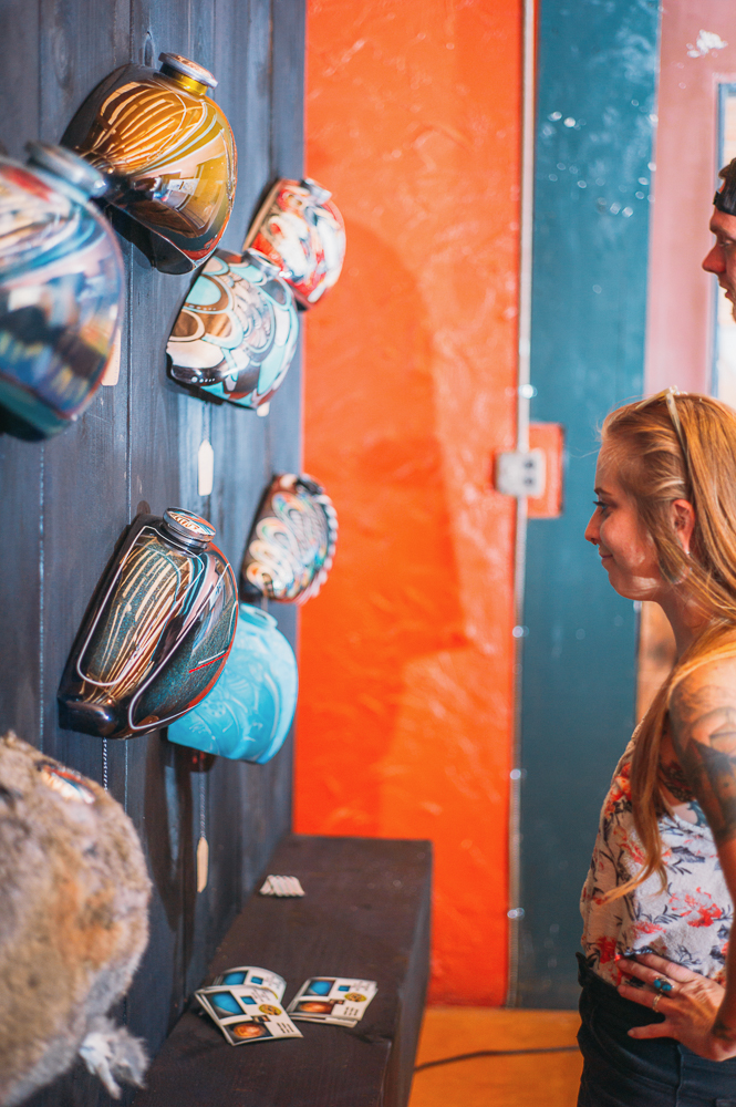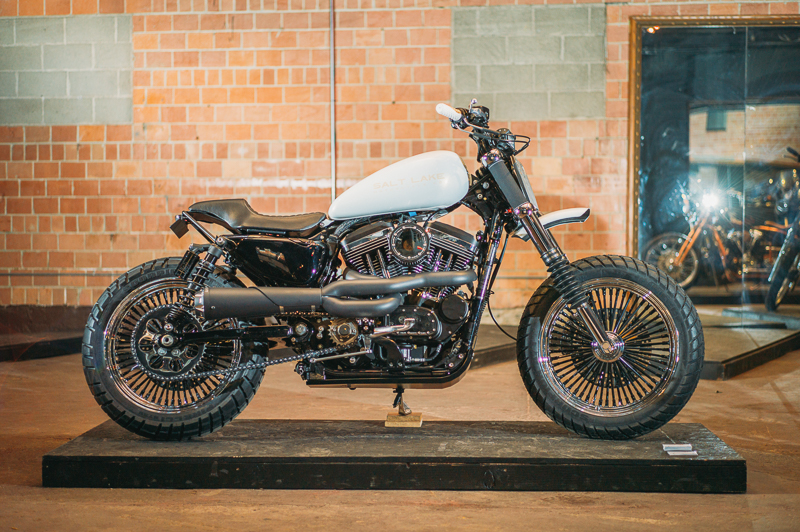 Two large halls were filled with motorcycles of every shape and size, all with the builder’s vision in mind. The event also featured Utah artists who painted helmets and gas tanks with unique designs displayed on a wall built by Project Sunday. Large prints by local photographers were hung on the walls for attendees to peruse and purchase. Local vendors setup pop-up shops, and among the products and services offered were jewelry by Abyss Body Piercing, custom tailoring from Urbana Custom Clothier and tattoos—which were being given at the event—by Cathedral Tattoo. Haircuts and shaves were being performed by Fuzzy Nates Barber Shop. Leather products were on hand from Dresser Leather and motorcycle gear was for sale from Salt Lake Motorcycle Co. Twigs Woodwear brought a selection of their wooden and nature-inspired glasses and watches, and women’s motorcycle clothing brand ATWYLD came all the way from Long Beach, California to show their wares. Bands Color Animal, Dead Things and Mad Max & the Wild Ones performed live music onstage, and SLUG contributor DJ Nix Beat spun garage rock n’ roll on vinyl.