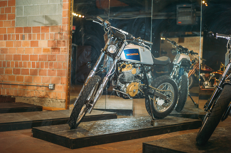 Bang Moto brought a very clean 2015 Triumph Thruxton 1200r and a 1979 Honda XL500, both heavily customized. Photo: @clancycoop
