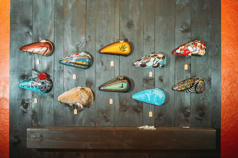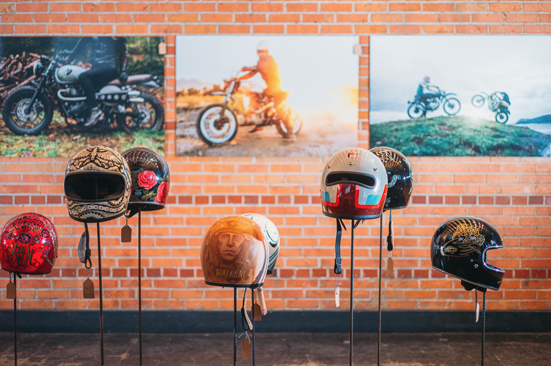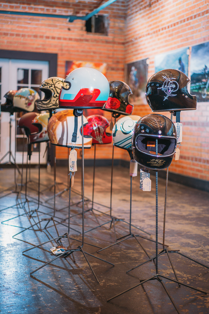 Biltwell motorcycle helmets painted by local artists were on display and for sale, mixing form and function beautifully. Photo: @clancycoop