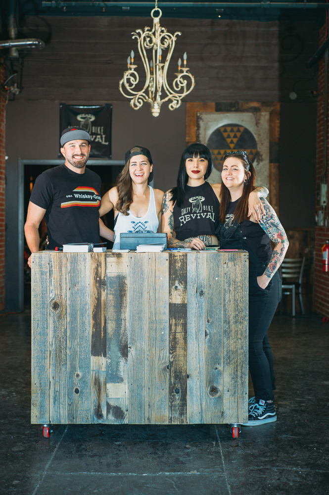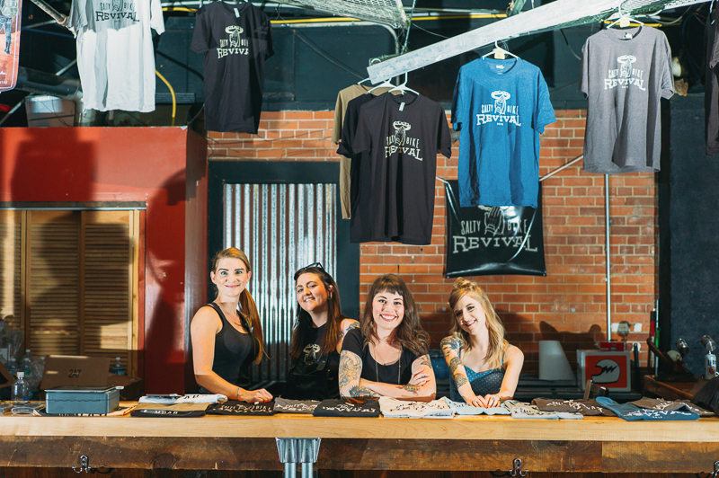 (L–R) SBR volunteers Ana Mann, Sam “Bronco” Maclin, Raquel Baker and Annie Davis were at the merch booth slinging’ SBR swag. Photo: @clancycoop