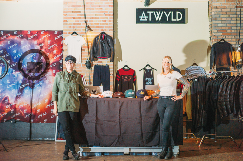 (L–R) Corinne Lan Franco and Jaime Dempsey of ATWYLD, a women’s motorcycle apparel company, came from Long Beach, California bringing beautiful functional motorcycle wear for women. Photo: @clancycoop