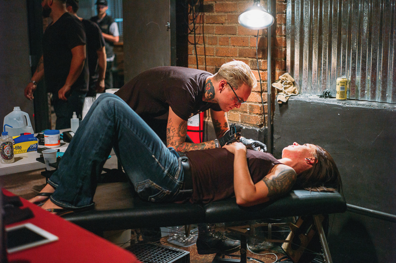 Adam Gibson of Cathedral Tattoo was tattooing throughout the event. Photo: @clancycoop