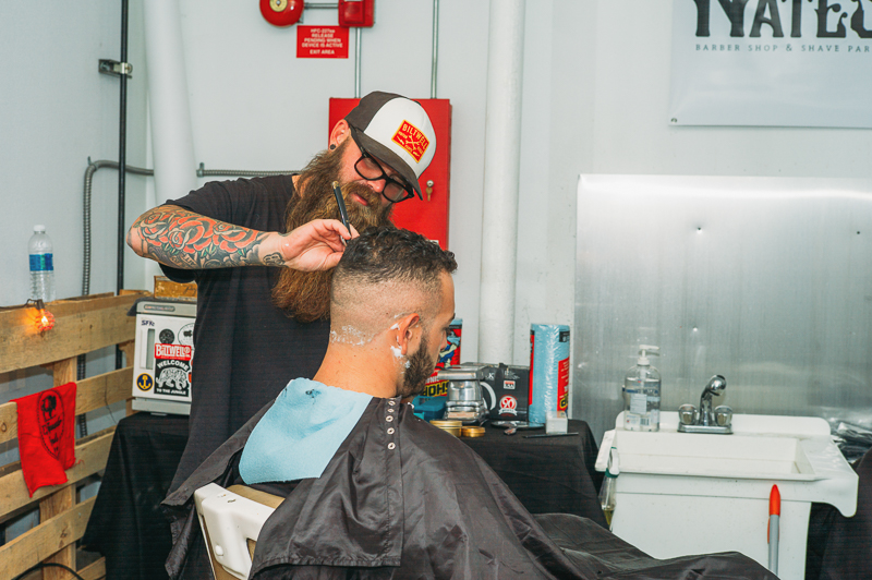 Nate Busch of Fuzzy Nates Barber Shop created a temporary shop and was doing cuts and shaves throughout the event. Photo: @clancycoop