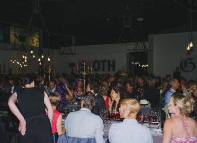 The UMOCA (Utah Museum of Contemporary Art) annual gala is always reliably and delightfully indulgent. This year’s theme was Seven Deadly Sins, and the event was held inside the museum’s Main Gallery space. Guests were encouraged to match their clothing to one of the seven traditional vices, namely envy, gluttony, pride, wrath, lust, greed or sloth. A color was paired with each so that guests could display their favorite form of depravity.