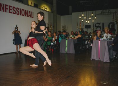 Guests watch as a performer balances above her partner. Photo: @clancycoop