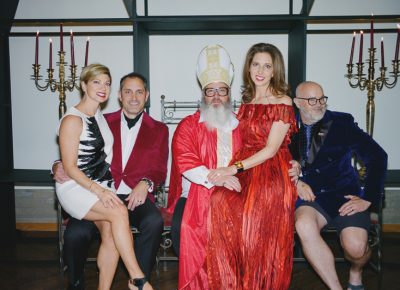 (L–R) Stephani Widmer (lust), Ben Widmer (lust), Jason Foster (The Pope), Molly Mazzolini (lust), and Jason Fowler (sloth). Photo: @clancycoop
