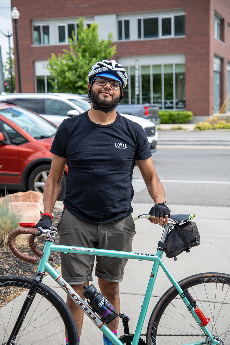 Salt Lake local David Lenz first noticed the bike scene’s strong sense of community after he stumbled into a Thursday 9/9/9 ride. He likes how there are cyclists from all over the world jammed into one weekly ride. Photo: Kaylynn Gonazlez