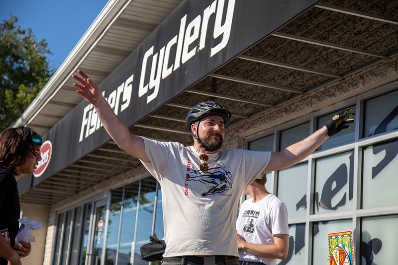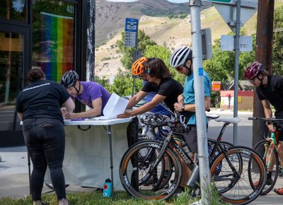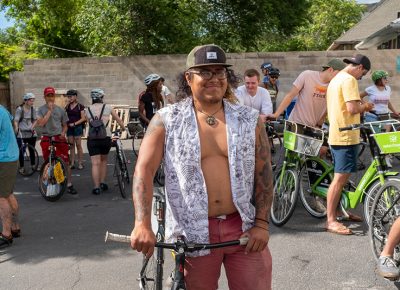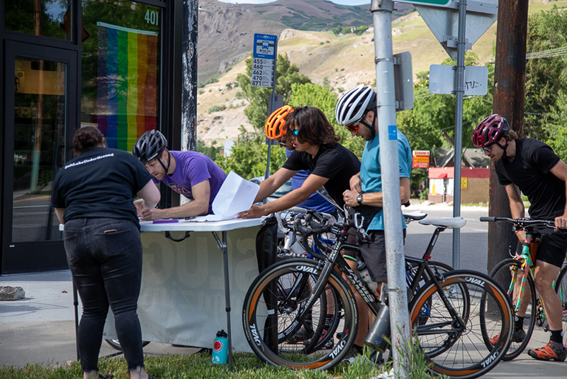 SLUG Magazine’s Brennen D. will instruct SLUG Cat racers to check out an SLC GreenBike and take a lap before earning a stamp on their manifest. Photo: Kaylynn Gonzalez