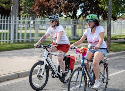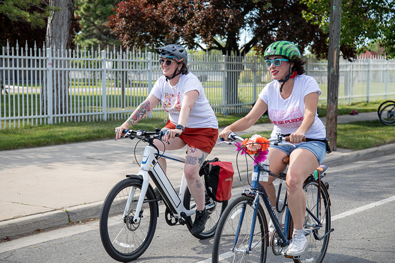 (L–R) Chrissy Upton and Jennifer Ortiz rode in the 2019 SLUG Cat with a group of friends that have been pals for 10 years. Ortiz decorated her bike for the Bike Prom ride from Fairmont Park to Liberty Park. She likes to ride long distances along the Jordan river or on the Legacy Parkway. Photo: Kaylynn Gonazlez
