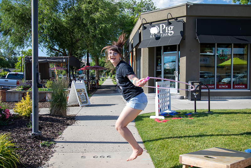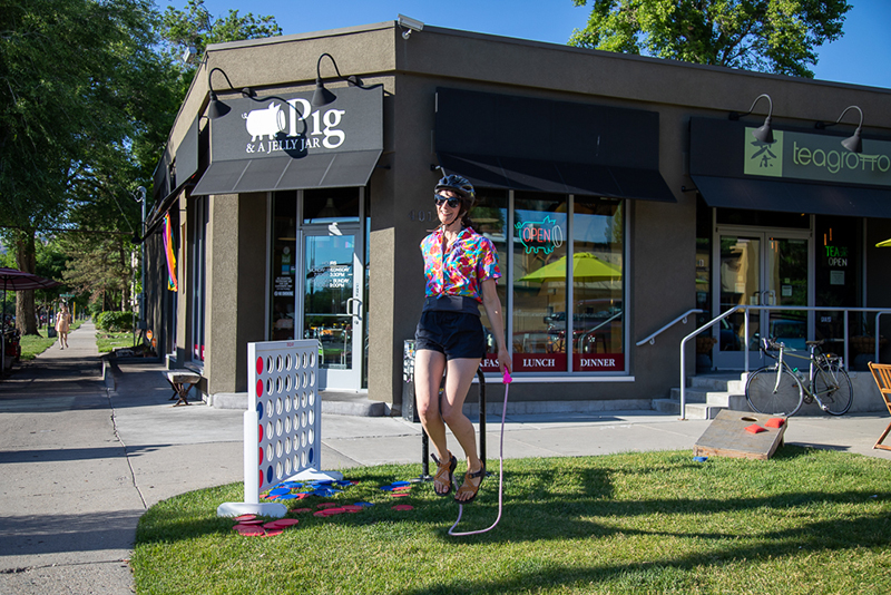 After registration at Saturday Cycles, the SLUG Cat included games and challenges at locations based on advertisements in SLUG Magazine’s May 2019 Bike Issue. In the most efficient manifest, a rider would travel about 14 miles in the following order: a newsletter sign up at Blue Copper Coffee, a snack at Mountain West Hard Cider, some unicorn hunting at Utah State Fairpark, a quick hop scotch Rose Park skate park, a fast lap on an SLC Bike Share Green Bike, hula hoop on the library square, a game of corn hole at Trolley Square, jump rope at Pig & a Jelly Jar, some flip for flip cup at Craft by Proper Brewing and finish with dizzy jacks at Fisher Cyclery.