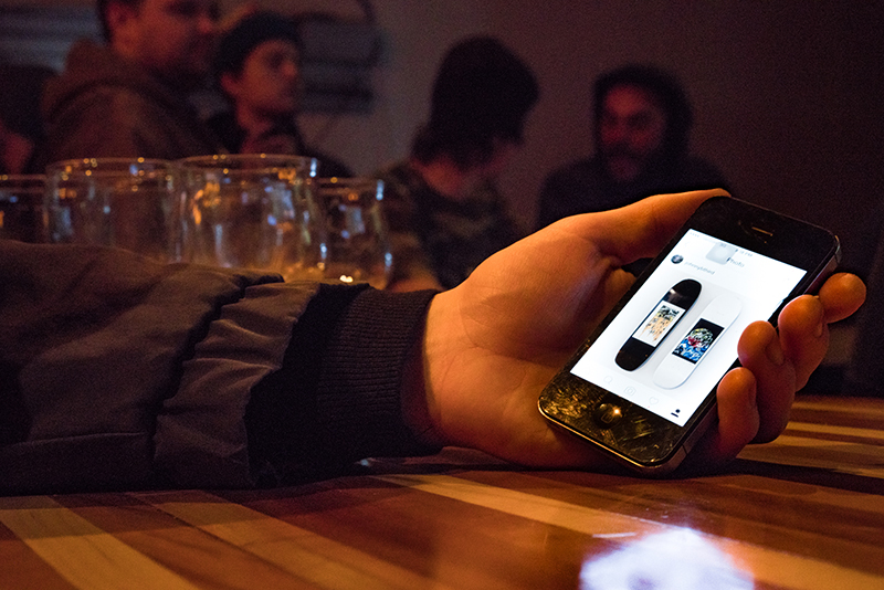 John Blume shows his paintings on skate decks and talks art while having a Shades of Pale IPA. Photo: Jo Savage // @SavageDangerWolf
