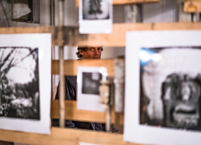 John Blume interacted with James Dumas’ photography exhibit. Entropic Dreams. Photo: Jo Savage // @SavageDangerWolf