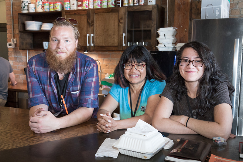 (L–R) Jerry Hoganson, Juvy Gray and Samantha Gray keep it in the family as they handle merch and front-end support for Rob Gray’s SLAMM.
