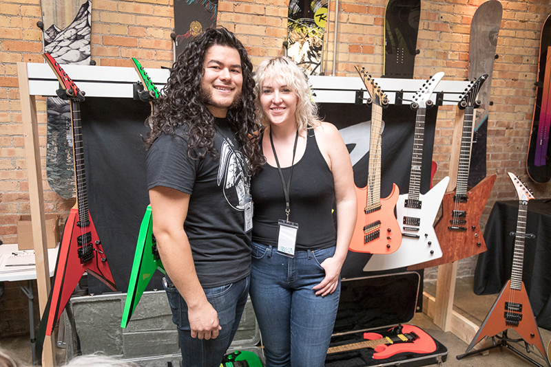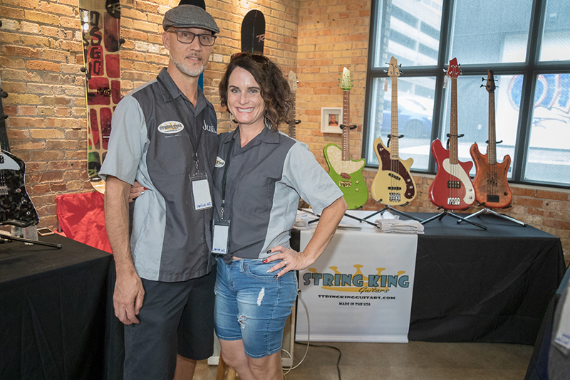 (L–R) Justin and Daphne Pearce from String Kings and Joe’s Guitars filled their corner of SLAMM with beautiful guitars. Justin’s String Kings is a production line with a two-to-three-week lead time for manufacture, and his Joe’s Guitars line is fully customizable with a three-to-six-month lead time.