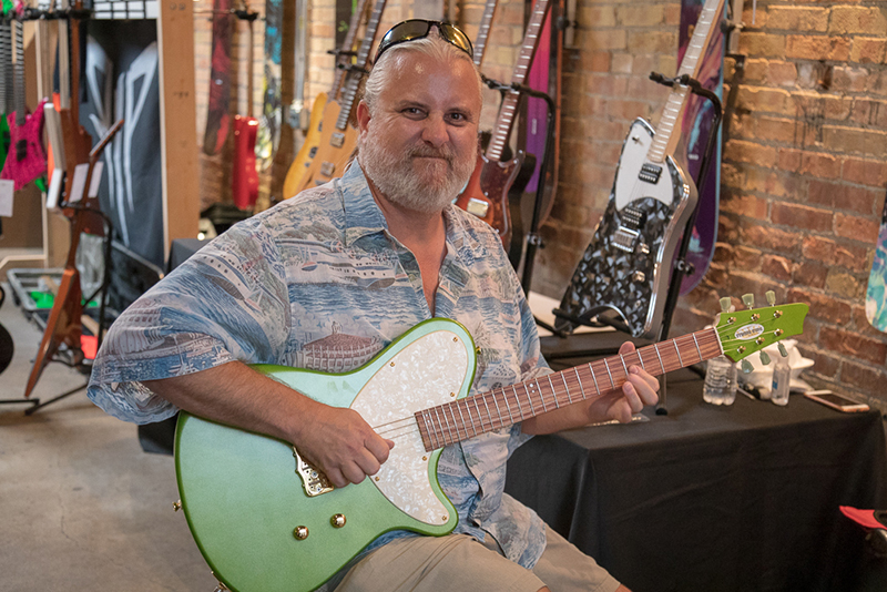 Mojave Jive’s Christian Phelps demos a String Kings SKG T-Bone. When he’s not playing in Mojave Jive, Phelps is helping to launch Summit Studios, which is just now opening.