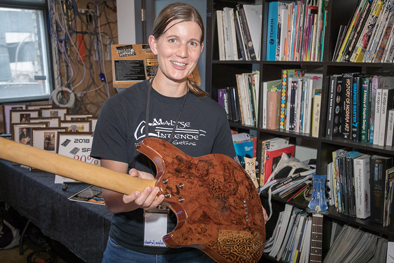 Assistant Manager Courtney Morgan represents KSM Music from Logan, Utah. She’s holding her personal guitar that was customized by her KSM colleague, David Kirkham.