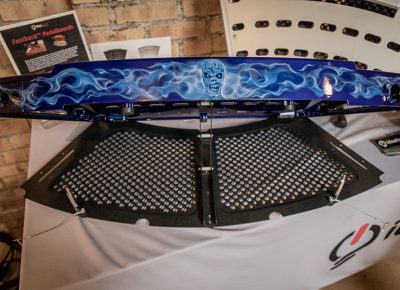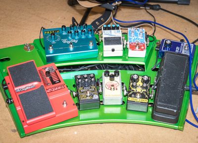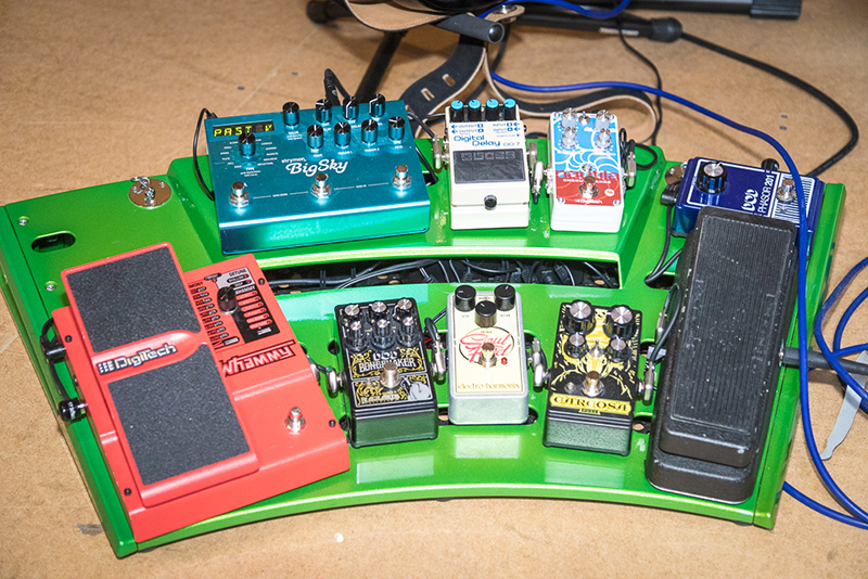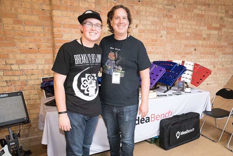 (L–R) Dylan and Rick Kreifeldt from ideaBench build custom pedalboards with a vintage–muscle car aesthetic. Rick saw what Rob Gray was doing with SLAMM on Facebook, so he decided to participate. He started ideaBench two years ago, after 21 years at Harmon Kardon as an engineer.