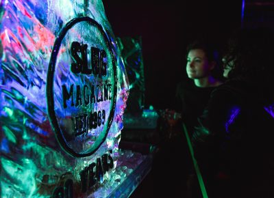 The SLUG Mag ice luge waits patiently to deliver jager bombs to the anniversary patrons.