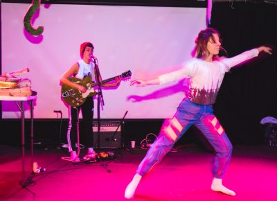 Nora Price of Durian Durian heads up the electric guitar mid performance.
