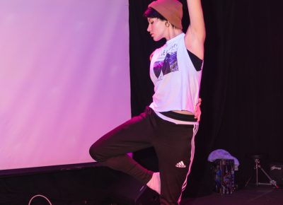 Nora Price showcases her balancing skills while performing with Durian Durian