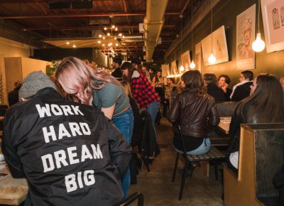 (L-R) Alex Topolewski, SLUG Executive Editor Angela Brown, Lindsay Heath and Sofia Scott enjoy some good drinks and good company over at the bar.