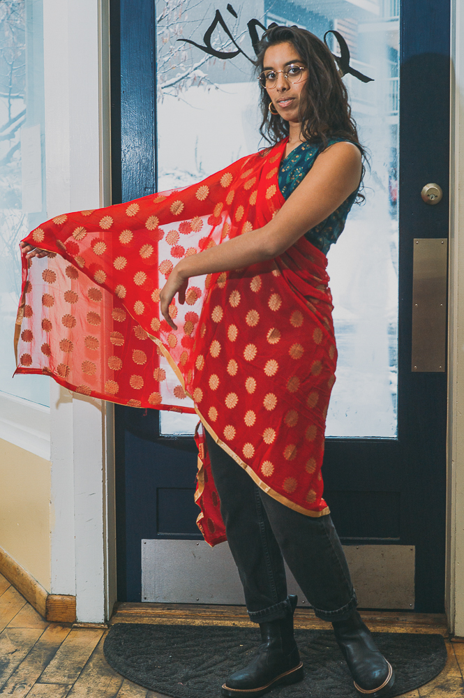 “I love wearing, like, Indian jewelry that I buy,” says Abraham. “And that first outfit I was wearing, the top and the scarf, those are both Indian outfits that I kind of hodgepodged into something that I would feel more comfortable wearing here. Just because wearing non-Western clothing in Utah can just be a little technically difficult.”