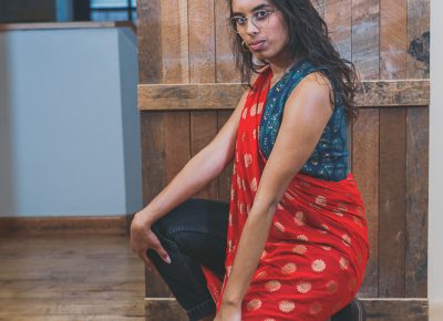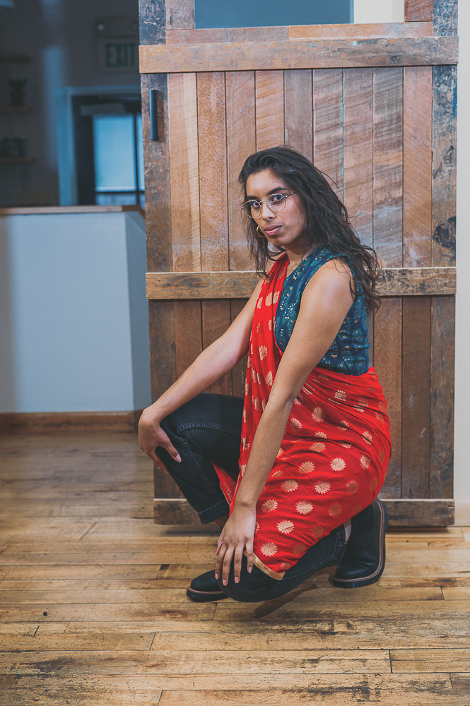 “I’m Indian. My parents immigrated here. I was born in the States, but I have a lot of family in India,” says Abraham. “I go to India every couple of years. I can’t wear like saris or the traditional outfits like an Indian from India does. And so I’ve kind of learned how to make Indian clothing and Western clothing work for my personality.”