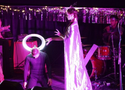 On June 20, I joined FilmQuest and the Space Venture Coalition (SVC) for the greatest space rock opera in Earth’s history. FilmQuest founder Jonathan Martin saw a live performance of Provo’s own SVC and thought they would be a great fit to his film festival. He was not wrong about that! SVC take you on an outer-space adventure on the Starship Fermi to investigate a strange signal coming from The Beautiful Planet. They battled a giant space monster, saved the ship, and they meet the Space Queen!