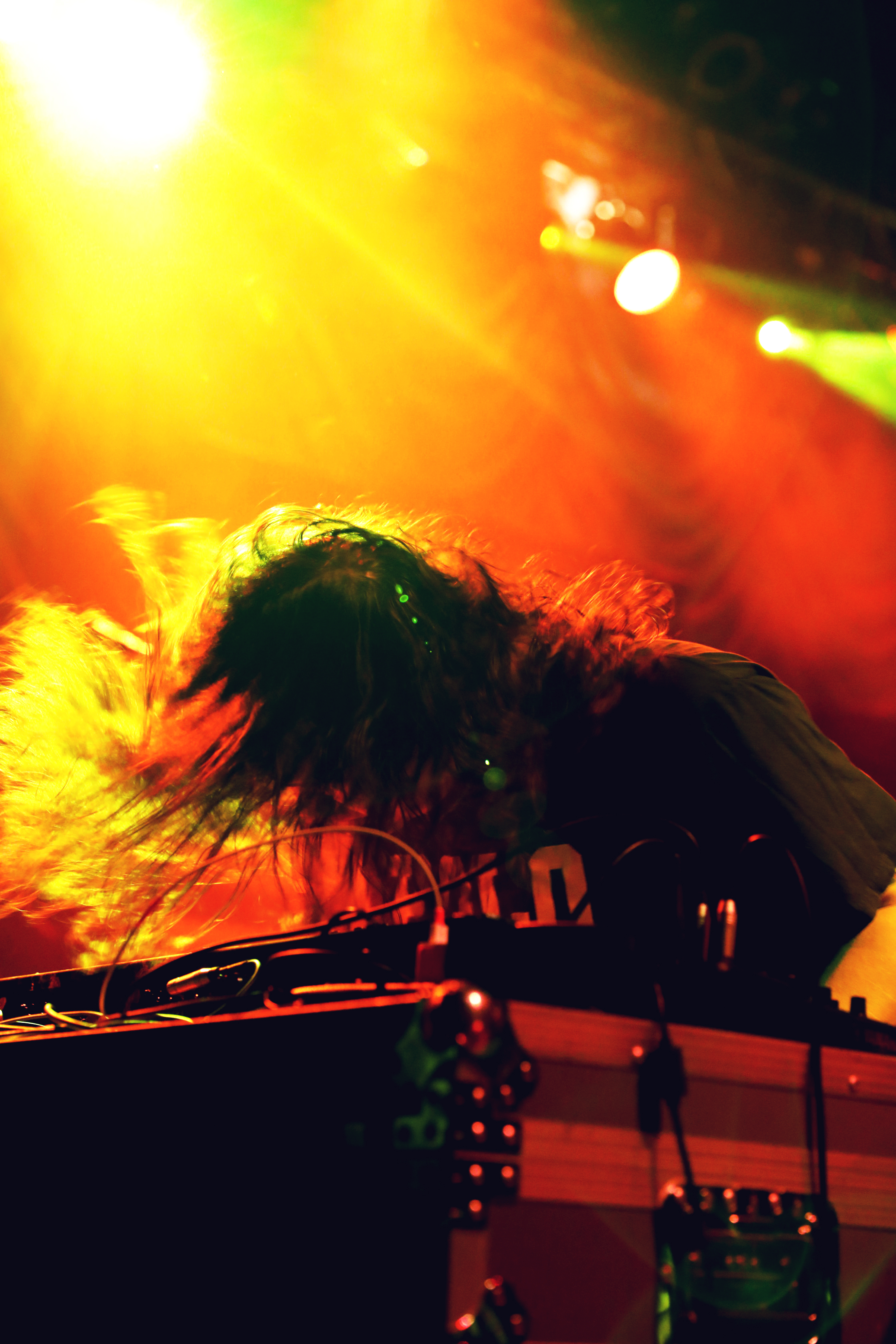 That group of songs got everyone revved up, which, I guess, was a perfect time for an intermission. For the next several minutes, the band, sans the guy with the keyboard and the drum machines, left the stage, and all we got was ambient noise with ambient lights. When the band returned, they started up again just like they did to begin the whole performance: slowly, quietly building back to a steady pace.