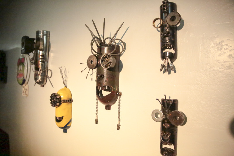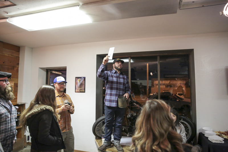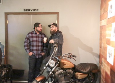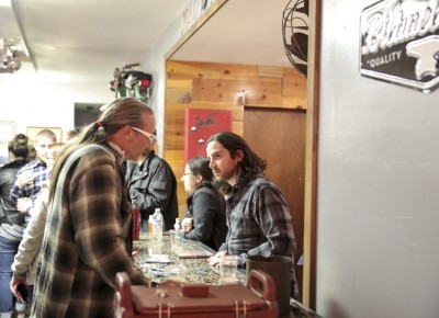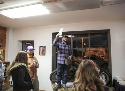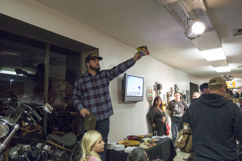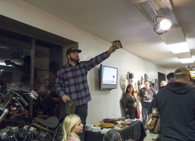 Suicide Lane Cycles held their one-year anniversary celebration and open house party on Friday, Nov. 20. Co-owners Davy Bartlett and Nikolas Garff wanted to celebrate their success of their business with friends and family, and what better way to do that than to throw a party at the shop? They had food and the drinks were flowing all night. To participate in the Friday night Gallery Stroll, Suicide Lane Cycles had artist Kristin Roper displaying her photos of various families posing with their motorbikes. Garff had his display of custom-made metal masks that he welded together out of various parts. They were quite the hit at the party, with guests taking numerous photos of them with their phones. Guests packed into the front area for a good time and to talk about their favorite cycles and different ways for customize their cycles.