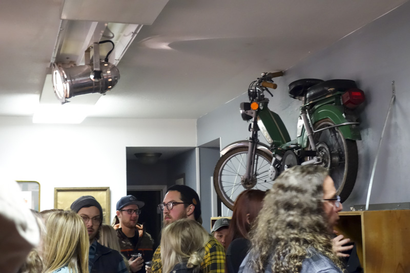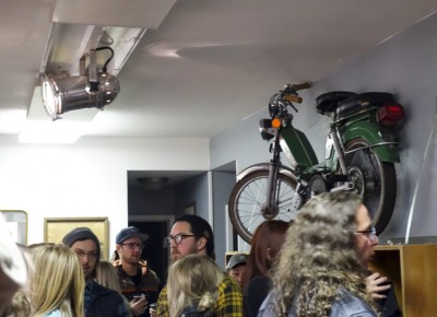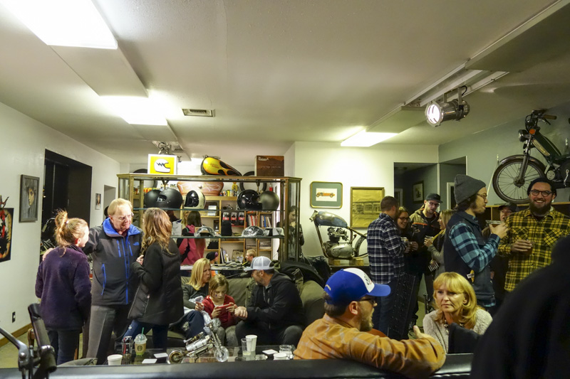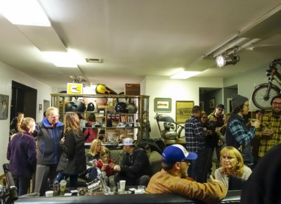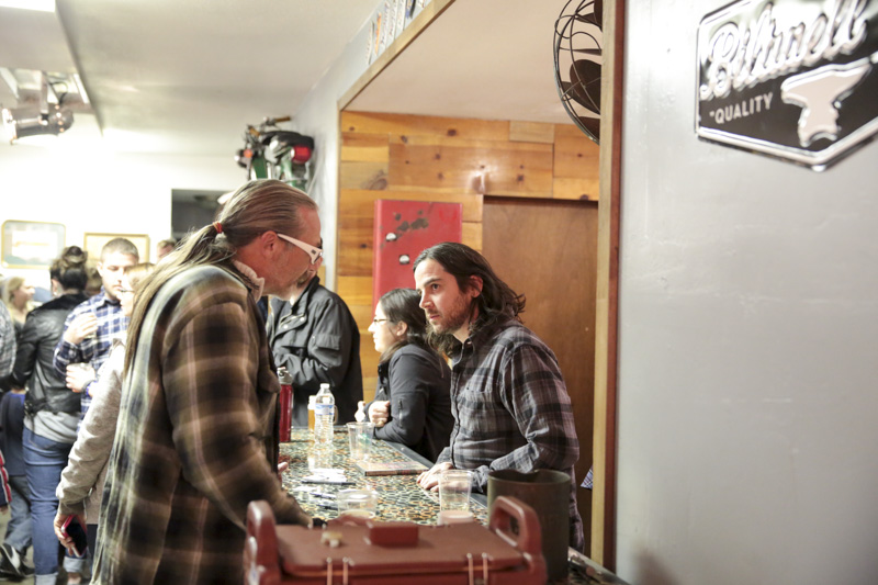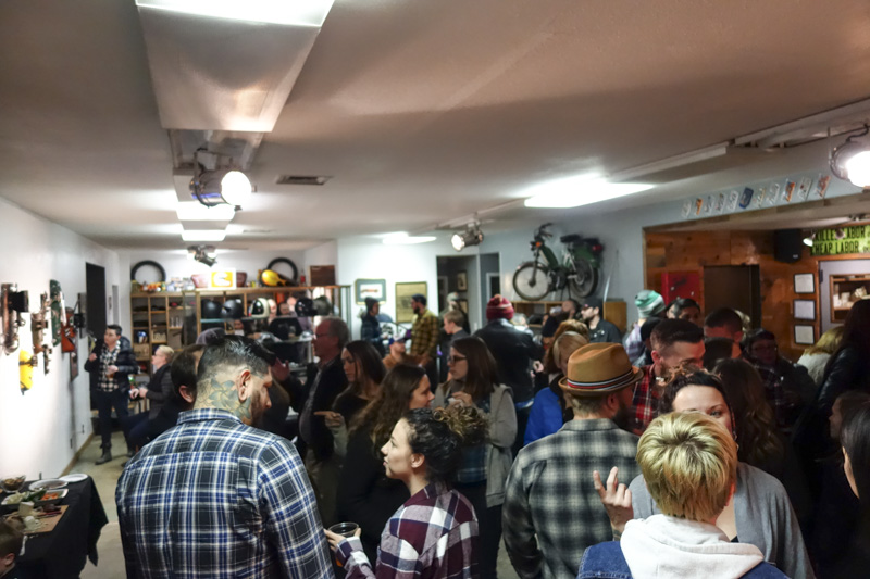 Guests having a great time at the Suicide Lane Cycles anniversary party. Photo by Jayson Ross.
