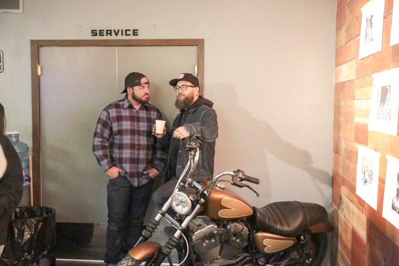 Guests talking about motorcycles. Photo by Jayson Ross.
