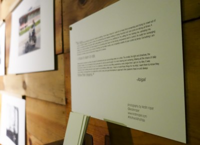 Kristin Roper’s artist statement hanging by her photograph prints. Photo by Jayson Ross.