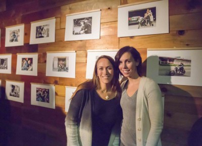 (L–R) Photographer Kristin Roper and friend Abigail Knibbe pose by Kristin’s prints. Photo by Jayson Ross.