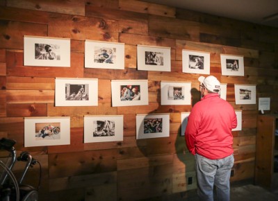 A guest checking out the photograph prints by Kristin Roper. Photo by Jayson Ross.