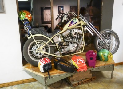 A great motorcycle and gas tanks on display at Suicide Lane Cycles. Photo by Jayson Ross.