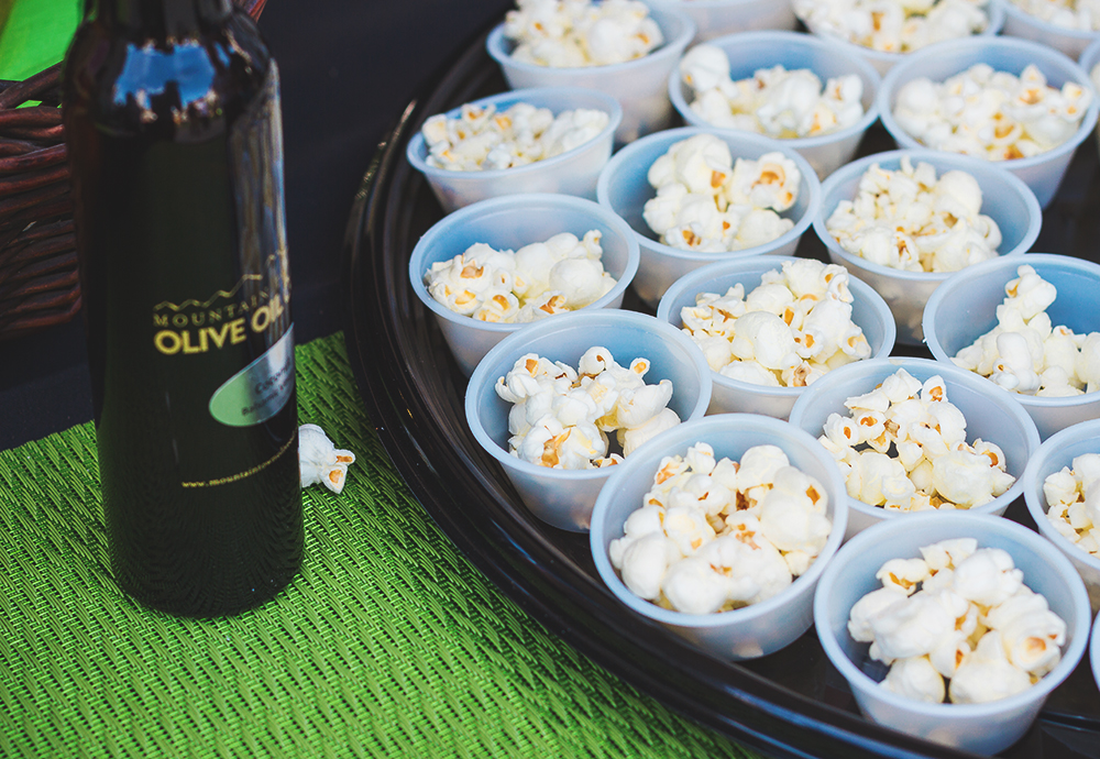 Mountain Town Olive Oil showed us the perfect use of their signature house olive oil, spread over stove-popped popcorn. Photo: Talyn Sherer