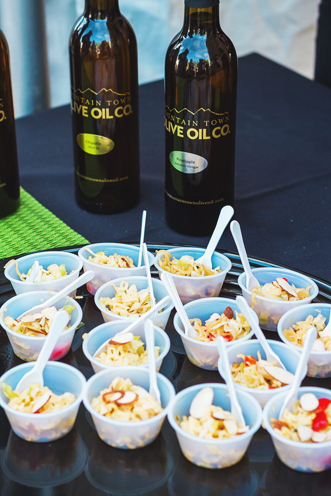 Mini noodle cups with almonds and peppers paired great with the Mountain Town Olive Oil. Photo: Talyn Sherer
