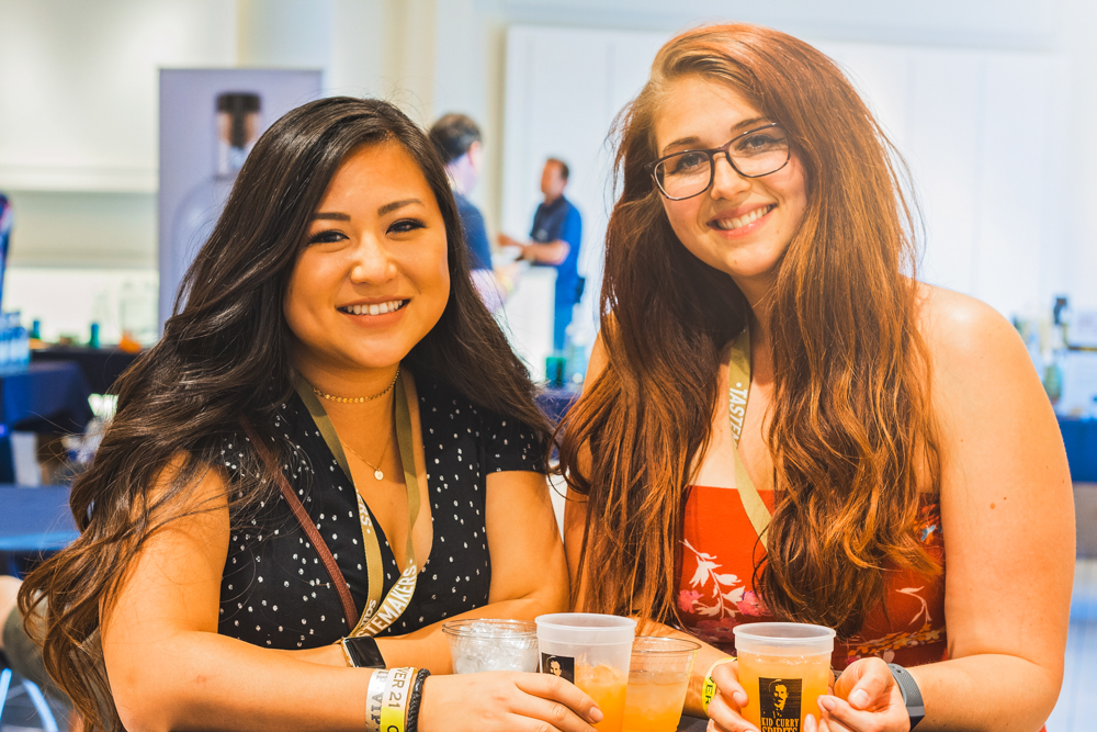 (L–R) SLUG Editor Alex Ortega enjoys a drink with