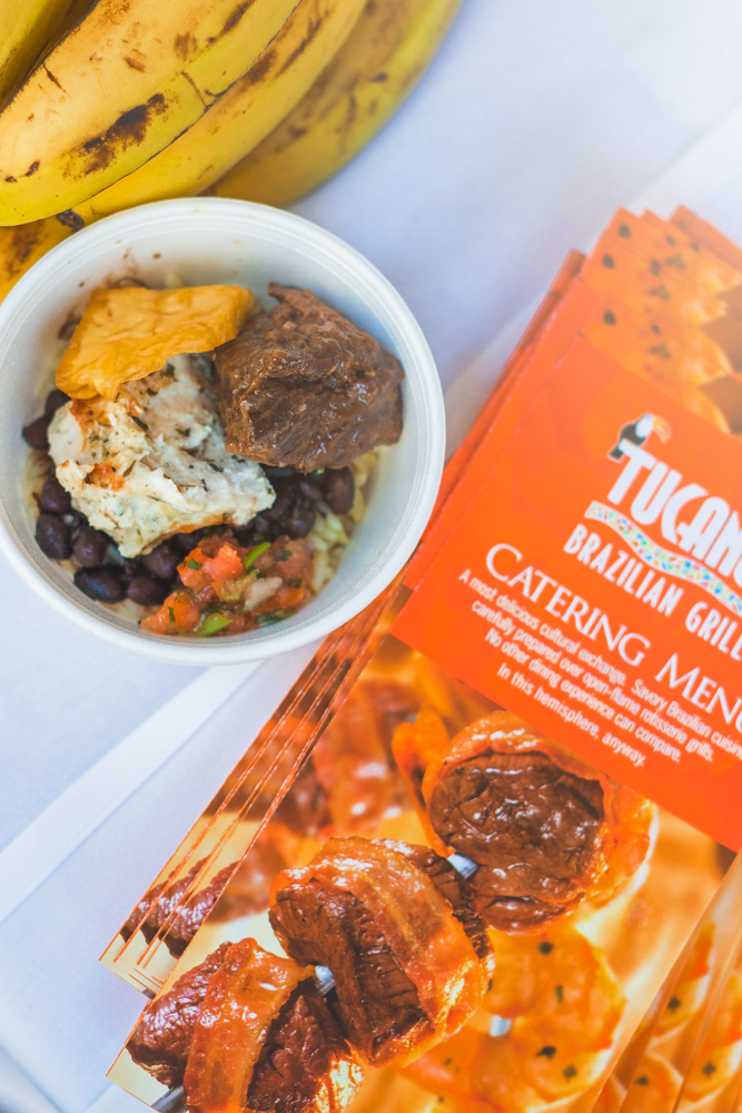 Tucanos had a full fare with their garlic sirloin, parmesan chicken and grilled pineapple over a bed of rice and beans. Photo: Talyn Sherer