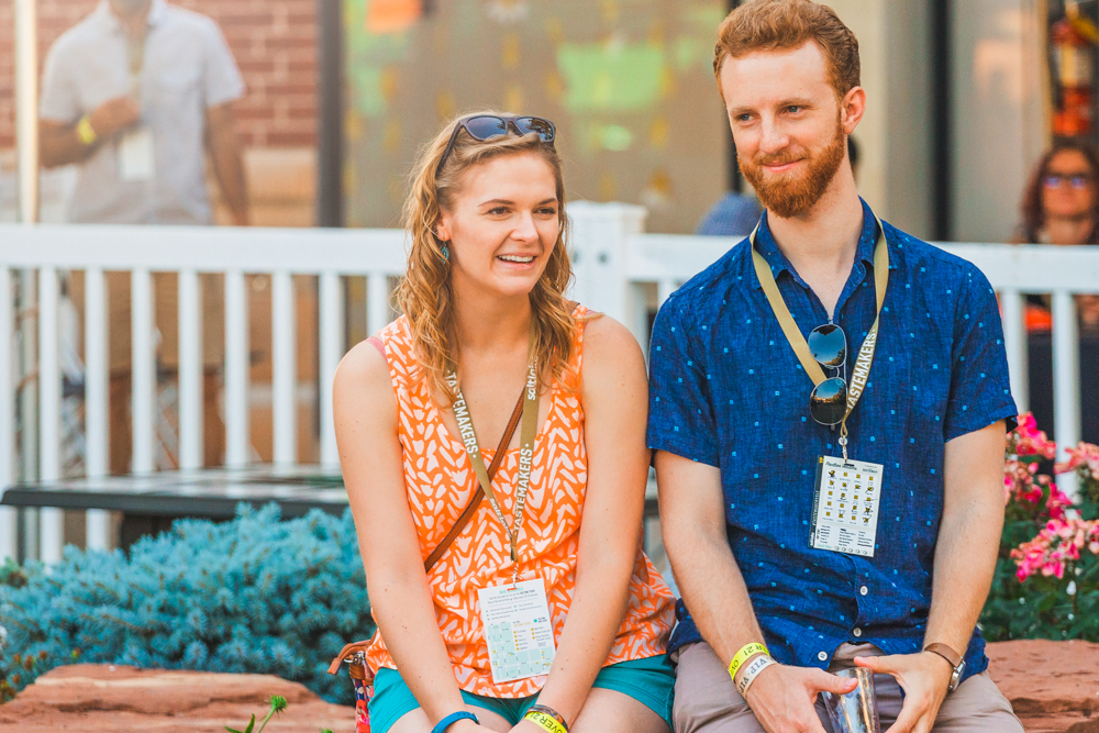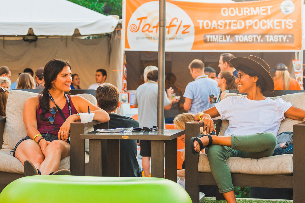 Two Tastemakers patrons relax their feet and stomachs after making their way through several vendors. Photo: Talyn Sherer