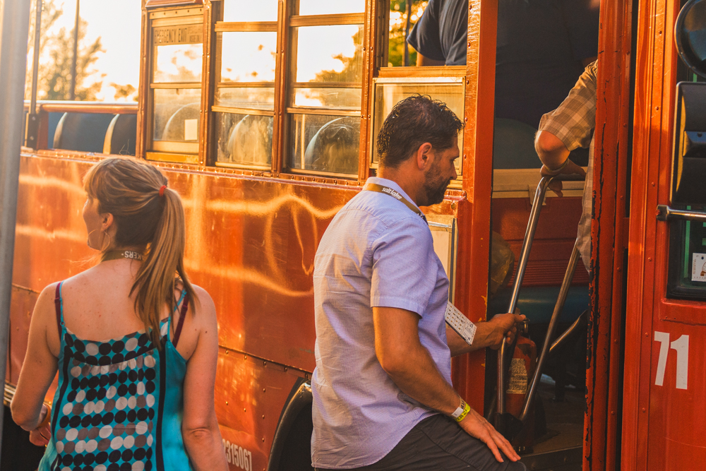 As the sun begins to set, Tastemakers attendees rush to jump on the bus to Finca. Photo: Talyn Sherer